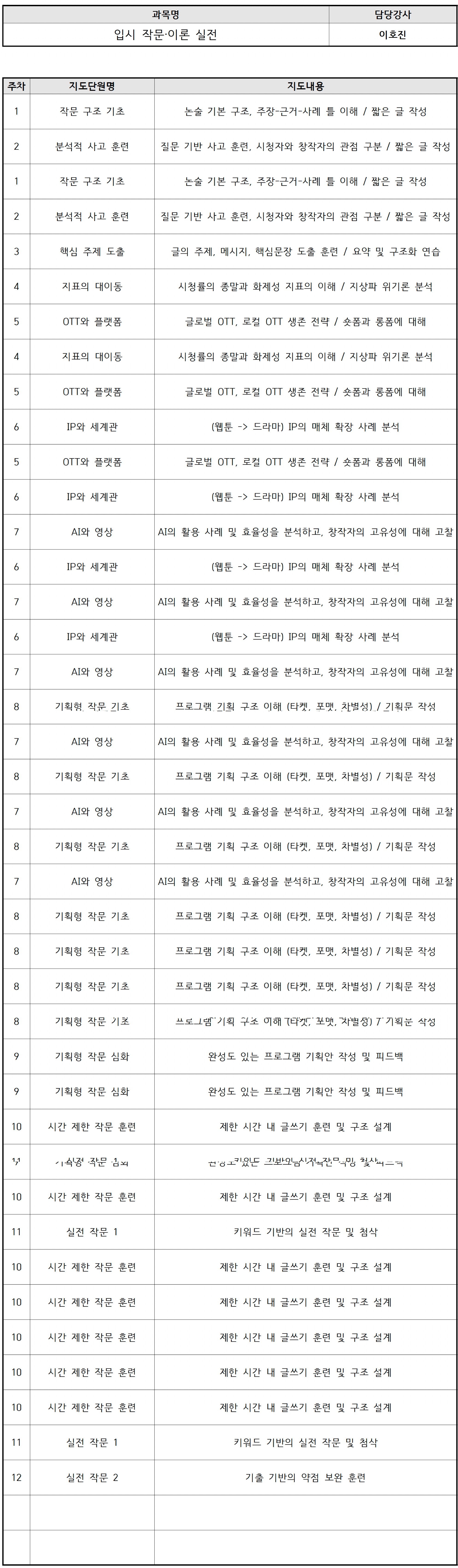 강의명: 입시 작문·이론 실전