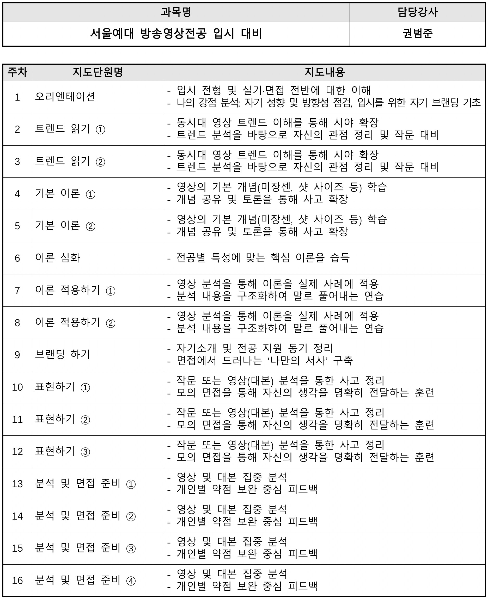 강의명: 서울예술대학교 방송영상전공 입시 실전 대비 (대본분석/면접)