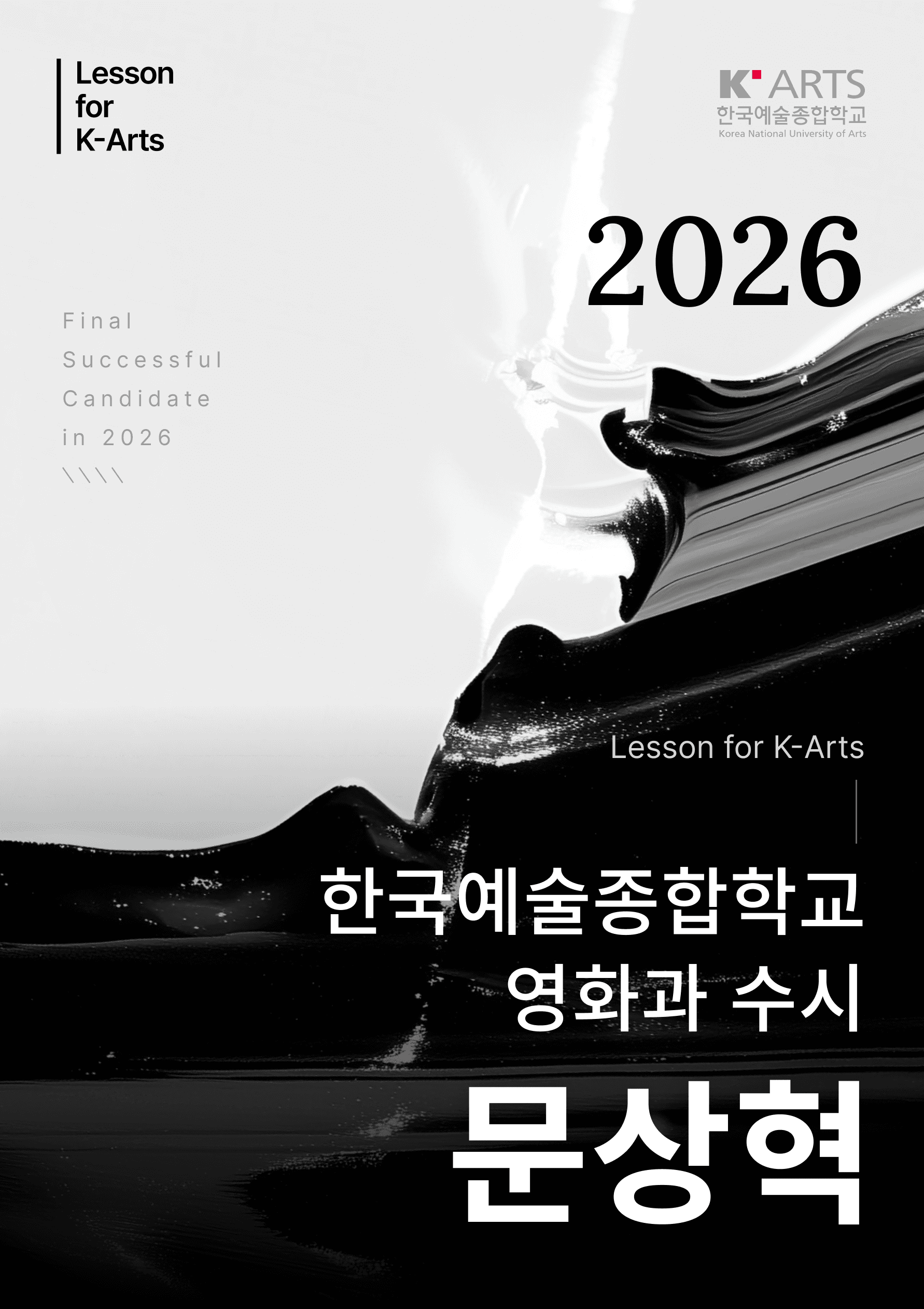 한국예술종합학교를 준비하며 느낀 가장 큰 점은, 정답을 잘 쓰는 것보다 자신만의 질문을 갖는 것이 훨씬 중요하다는 것이었습니다. 한예종 입시는 ‘이야기를 얼마나 잘 만드느냐’보다, 그 이야기를 통해 어떤 생각을 하고 어떤 세계를 바라보는 사람인지를 보고 있다는 느낌을 많이 받았습니다. 그래서 영화를 많이 보는 것도 중요하지만, 그만큼 영화 밖의 세계를 바라보는 시간도 꼭 필요하다고 생각합니다. 뉴스, 기사, 다큐멘터리, 일상 속 작은 사건들까지 왜 그런 일이 일어났는지 스스로 질문해 보시길 바랍니다. 그 질문들이 결국 글과 면접에서 자연스럽게 드러납니다. 마지막으로, 준비 과정에서 흔들리는 순간이 오더라도 ‘내가 왜 영화를 하고 싶은지’라는 질문만은 끝까지 놓지 않았으면 좋겠습니다. 그 질문을 계속 붙잡고 있는 사람이, 결국 한예종이 찾는 창작자에 가장 가까운 사람이라고 생각합니다.