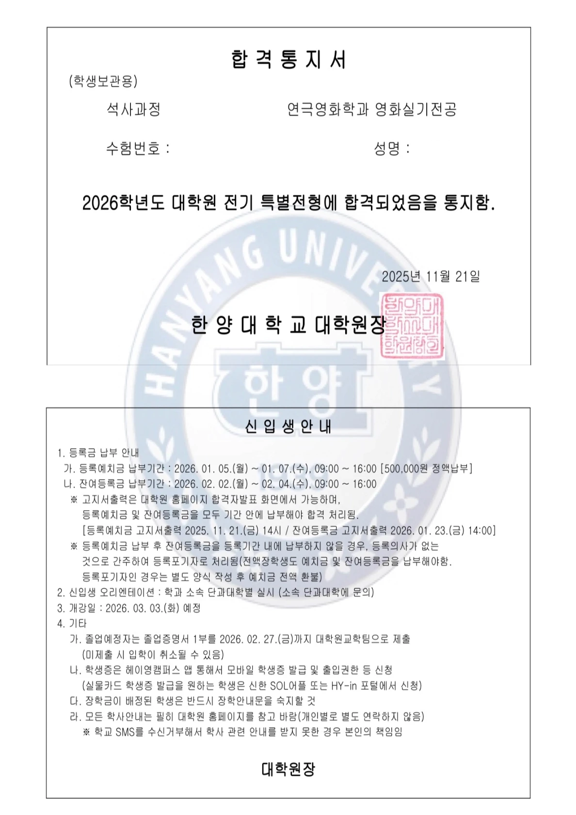 2026 한양대, 동국대 영화과 실기석사과정 장혜수 (2)